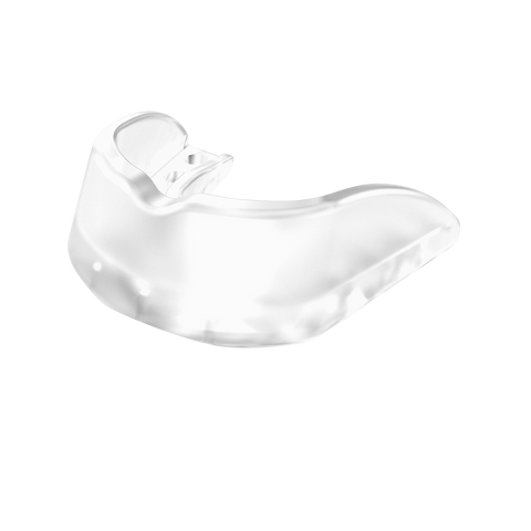 Single layer mouthguard for optimal dental protection including easy-to-clean storage case.