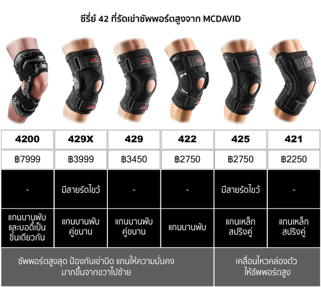 The Biologix 4200 Biologix Knee Brace is MCDAVID's highest support support. Biologics is a design based on the human anatomy. and advanced engineering, using the design, materials and biomechanical processes of natural human limits. It is lightweight, semi-rigid, comfortable to use. Used for relief and prevention of knee pain, knee pain, twisted knee, dislocated knee, dislocated patella, torn cruciate ligament (ACL), torn lateral ligament (MCL) and others, is the highest level of protective knee support (LEVEL 3+). C-shaped aluminum provides maximum protection against twisting and unnatural bending of the knee. Enhance stability to the knee ligament (LCL) and (MCL). Can be worn for all types of sports such as football, badminton, basketball, running, volleyball, skating, walking and can be used in everyday life. Including those who have had severe injuries, undergone surgery and want to prevent recurrence of pain. Reduce impact on knees, knee ligaments when moving and jumping. prevent twisted knee Can be put on top of the curry