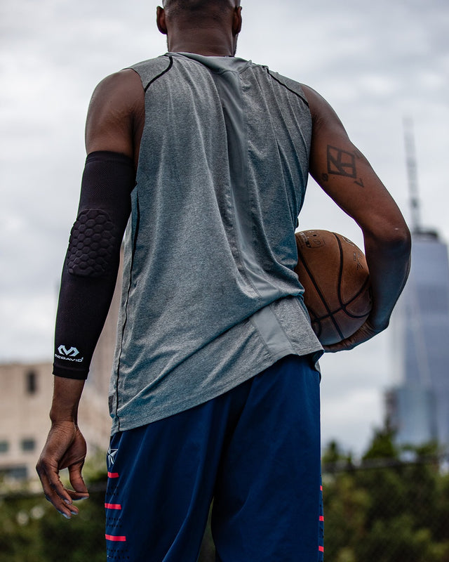 Compression compression arm sleeves with HEX elbow pads help prevent injuries from bumps and scratches that may occur during sports. Especially sports with a high chance of collision such as basketball, volleyball, skating, American football, rugby, hockey and increasing muscle performance. blood flow and oxygen as well as UV 50+ protection with a special technology researched and researched by MCDAVID, widely used by NBA pro athletes.
